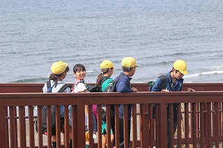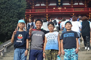 常盤小学校では江の島・鎌倉方面の修学旅行を10月8日、一泊二日で実施しました。学校を出発した時の雨も江の島に着く頃にはすっかりあがって晴れ渡りました。一日目は班別行動の日です。江ノ島水族館でイルカショーを見た後鶴岡八幡宮まで大仏などを観ながら班ごとに移動しました。どの班も時間を守って協力しながらしっかりとできました。ホテルの夕食は、豪華なバイキングで、みんなたくさん食べていました。