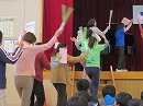 今年度最後の給食は、スパゲティナポリタンです。トマトの酸味でおいしくペロリンできますね。チキンの香草焼きも、バーブの風味で食が進みます。