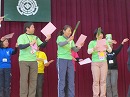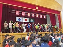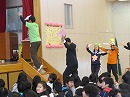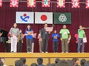 ふっかちゃんグッズを身にまとった先生方がステージに整列