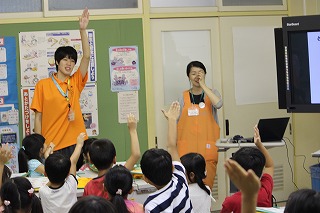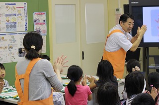 常盤小学校では、9月7日、花王株式会社様の社員の方6名に学校に来ていただき一年生の手洗い教室を行いました。手には、汚れやばい菌がたくさん潜んでいて、手洗いをしっかりと行うことの大切さを学習しました。