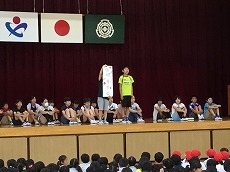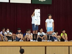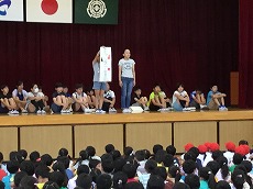 児童集会で委員会の紹介が行われました。
