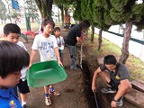 校庭の草むしりや側溝の掃除も行いました。