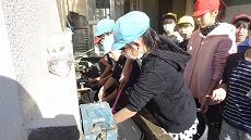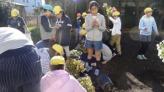 多胡さんは、6年生が育てている菊の水の管理や