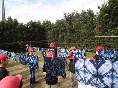 それぞれ思い思いの縛り方で、藍染めをしました。