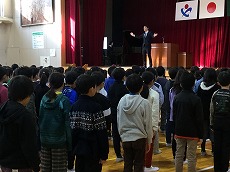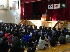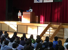 児童代表の言葉、校長先生の話、
