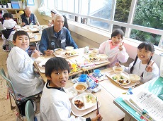 給食も親父の会の方々といっしょに食べて、