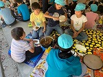 今日は「お話給食」です。ぐりとぐらの絵本に出てくる卵を使ったカステラの登場です。大きな卵ではありませんが、卵にすると90個分の液卵を使ってカステラを作りました。秋の夜長に絵本を読んで、心にも栄養を届けましょう。