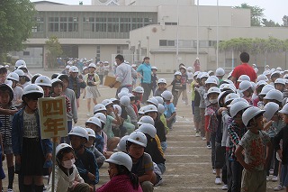 常盤小学校では、5月1日に、地震を想定した避難訓練を行いました。児童は、先生方の指示の下、真剣に取り組んでいました。避難は、大変静かに素早く行えました。