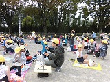 31日(月)は、給食を縦割り班で食べる青空給食でした。