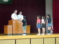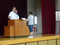 名前を呼ばれた児童は、元気よく返事をして立つことができました。また、代表として壇上に上がった児童も、立派な態度で賞状を受け取りました。