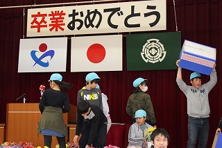 常盤小学校では、明日3月23日、第47回卒業証書授与式を挙行する運びです。そのための準備を5年生が、午後弁当もちで先生方といっしょに取り組みました。通路の掃除や椅子並べなど熱心に当たり、しっかりと整えてくれました。