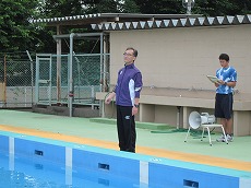 矢部先生と校長先生から、安全で有意義な水泳学習をするために