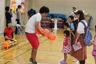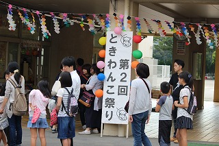 常盤小学校では、9月23日、「第2回ときわんこ祭り」と称して、PTA主催のお祭りを開催しました。子供のために半日学校を開放して様々な催し物が行われました。内容は、巨大ガラポン、バスケットビンゴ、輪投げビンゴ、ルーレットダーツ、紙飛行機コンテスト、バルーンアート、リフティングパフォーマンス、消防車展示など様々で、カレーやかき氷、ポップコーンなどの屋台も出て、子供たちは大喜びでした。