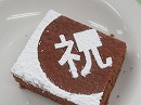 子どもたちが配膳するその横の窓際には、「祝卒業」と