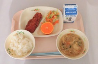 今日は冬野菜カレーです。れんこんとごぼうが入っています。サラダには大根が入っています。冬野菜にはビタミンCがたっぷりです。カゼ予防のためにもたくさん食べたいですね。大根は常盤小の学校農園で育てたものです。シャキシャキのサラダになりました。