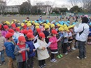 校庭では1年生と4年生です