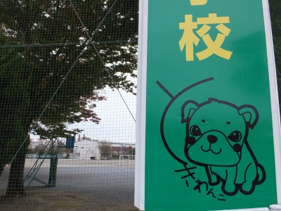 後方が校舎          常盤小のゆるキャラ「ときわんこ」