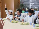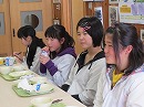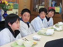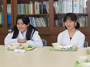 今年度最後の給食は、スパゲティナポリタンです。トマトの酸味でおいしくペロリンできますね。チキンの香草焼きも、バーブの風味で食が進みます。